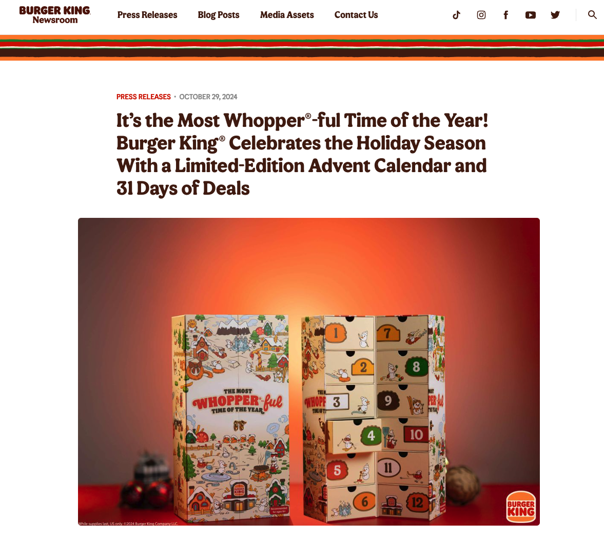 For instance, Burger King announced they are selling an Advent calendar: