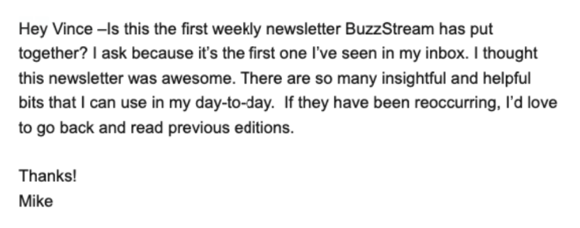 You’ll receive helpful BuzzStream articles, videos, and podcast episodes full of tips and tricks from experts in the field.