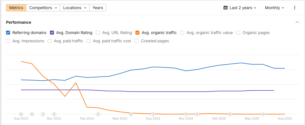 Many domains that rank well in DR are still classified as Low-quality due to their low organic reach (and vice versa).