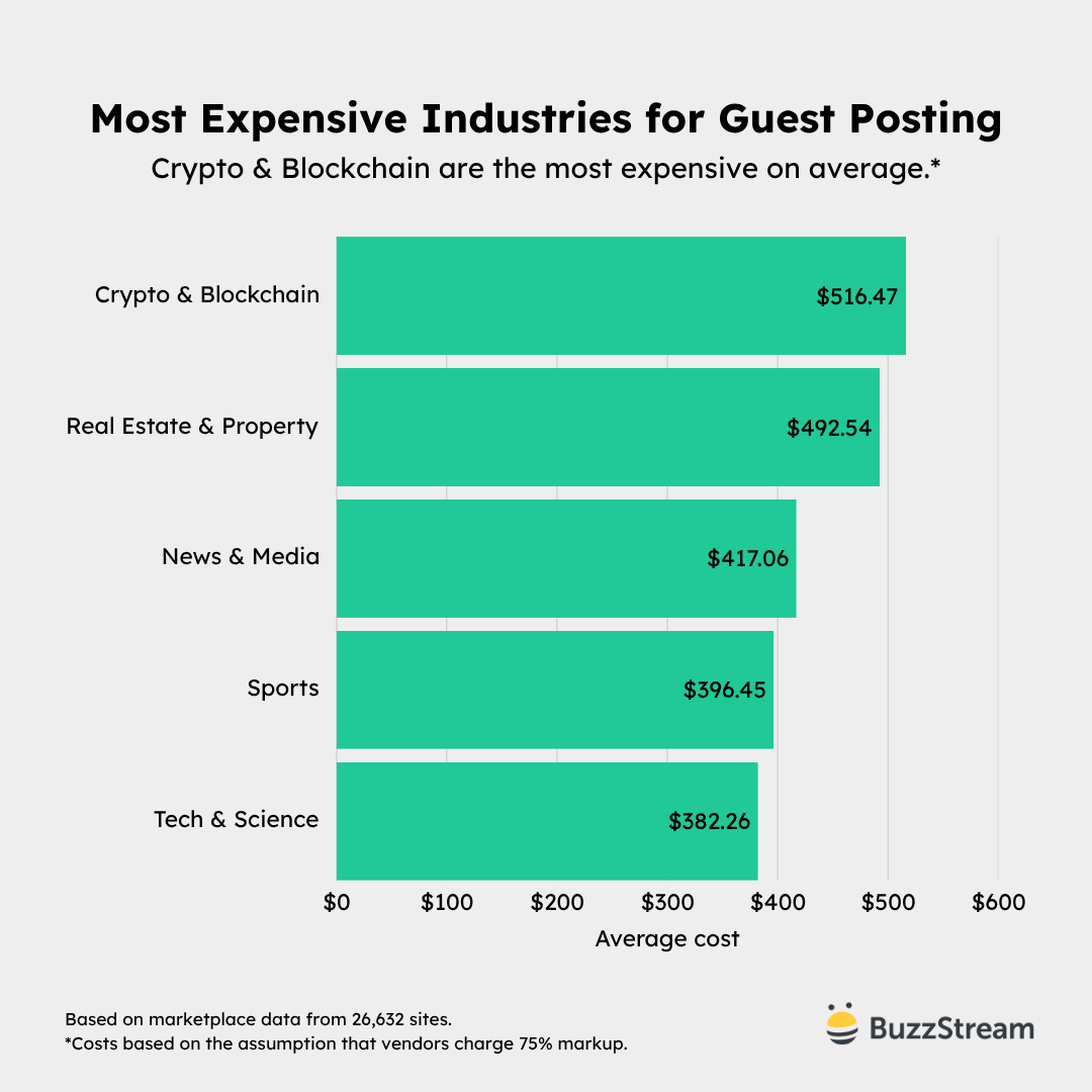 - Average guest post costs $365—but quality posts range $692–$957 before vendor markup.