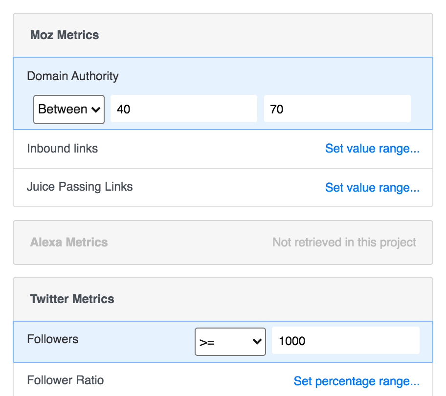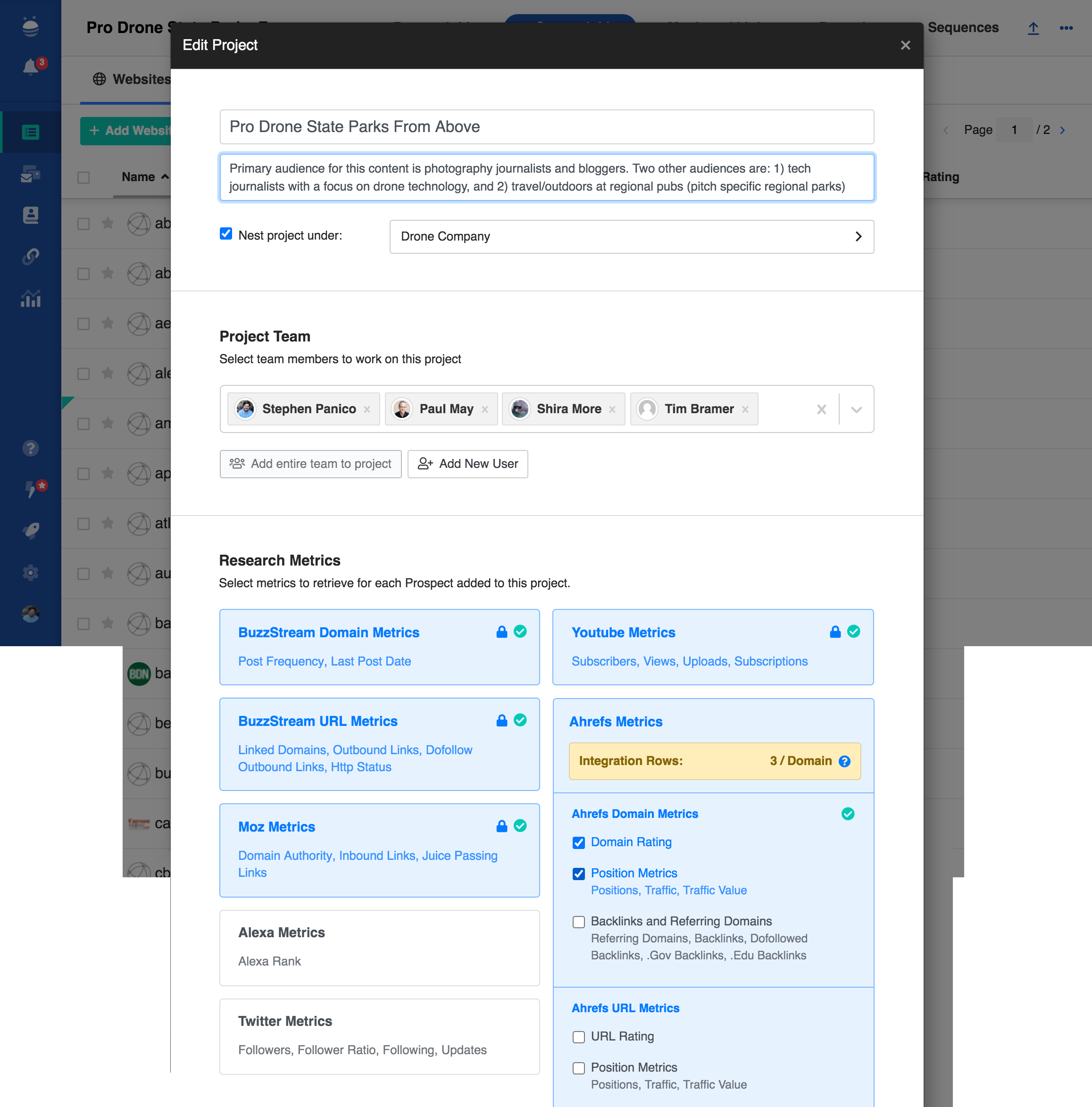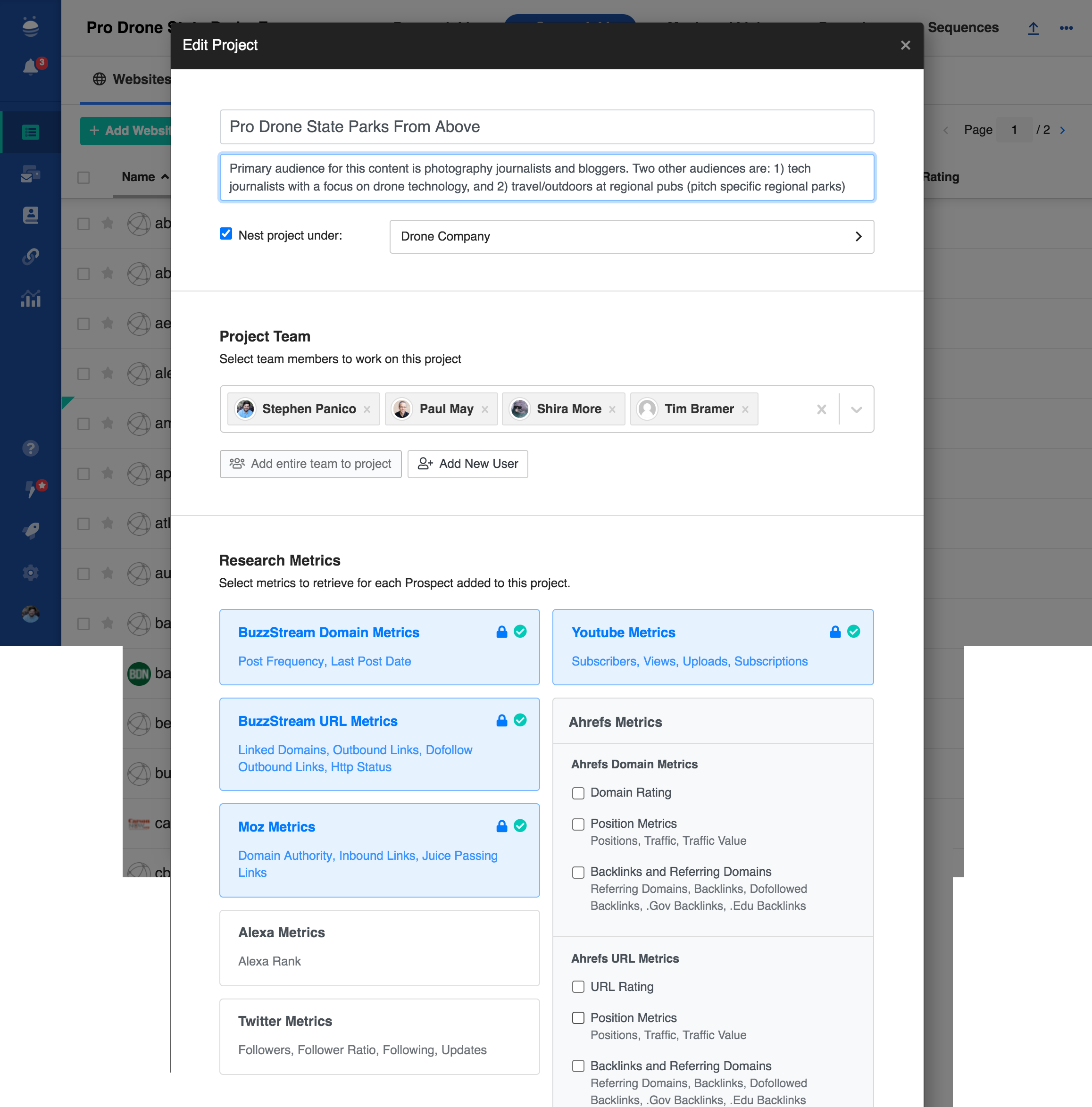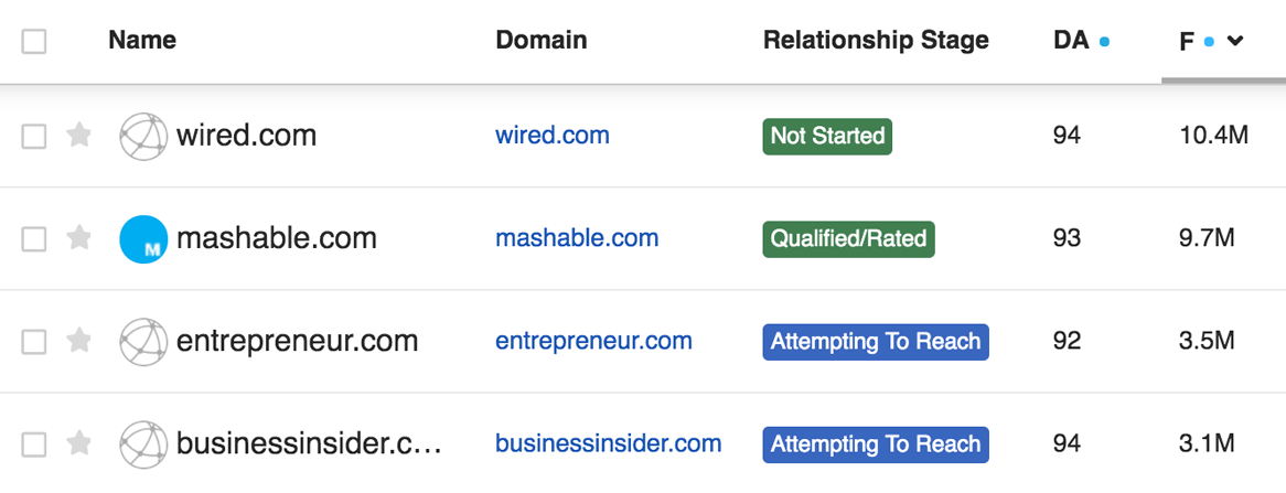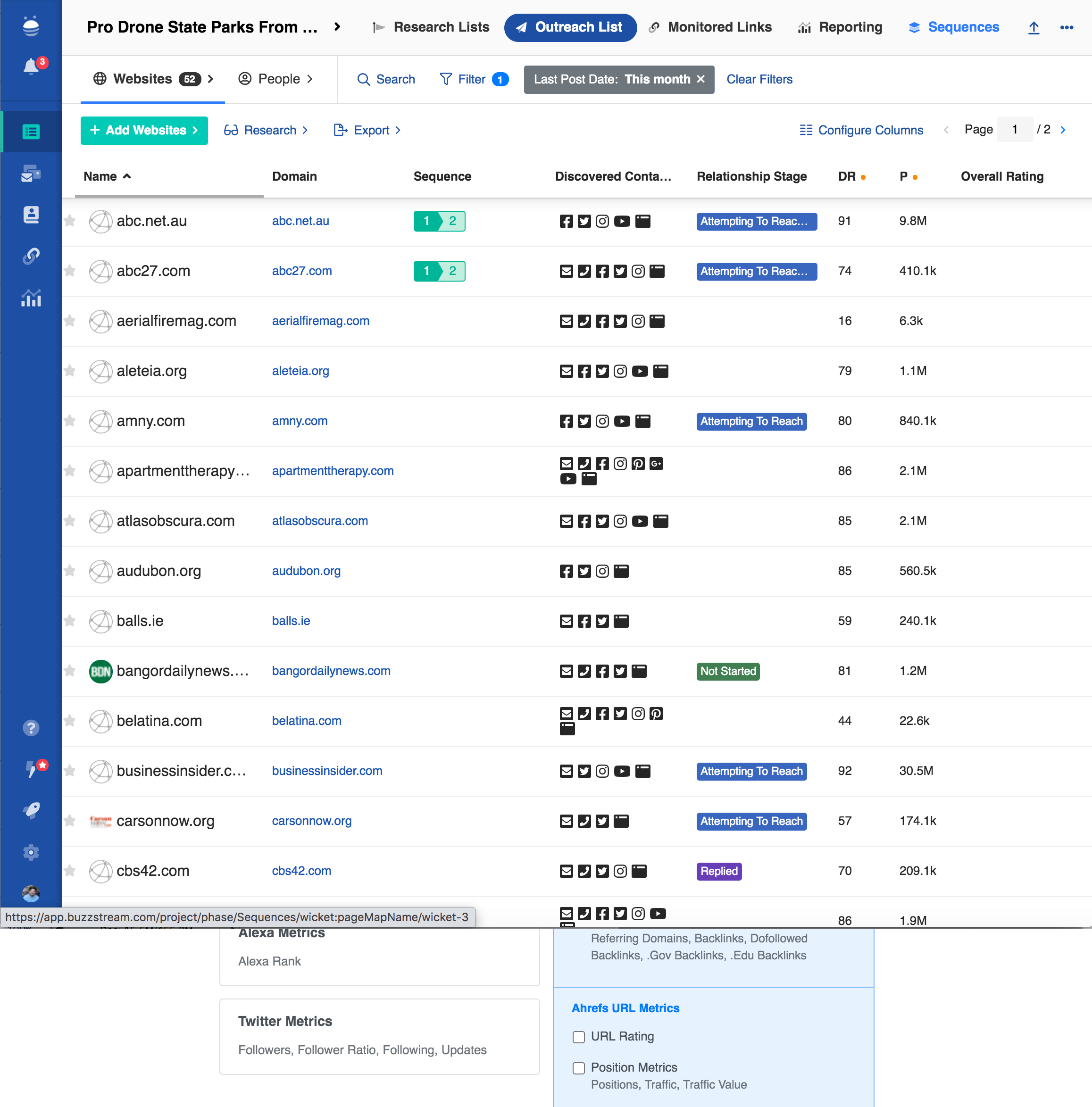 Upload a list of URLs, and BuzzStream will automatically discover contact information, website stats, and social metrics for you.