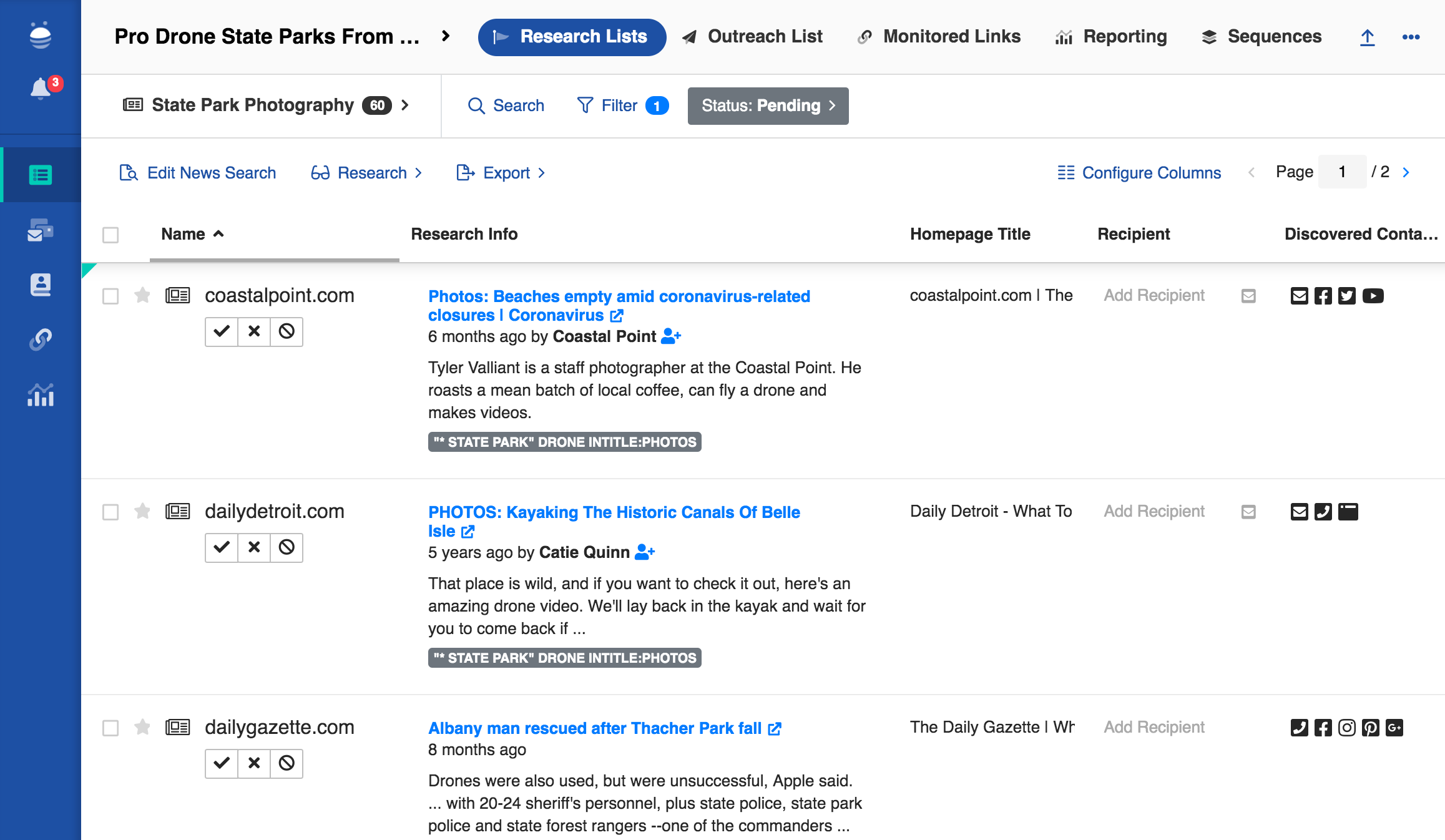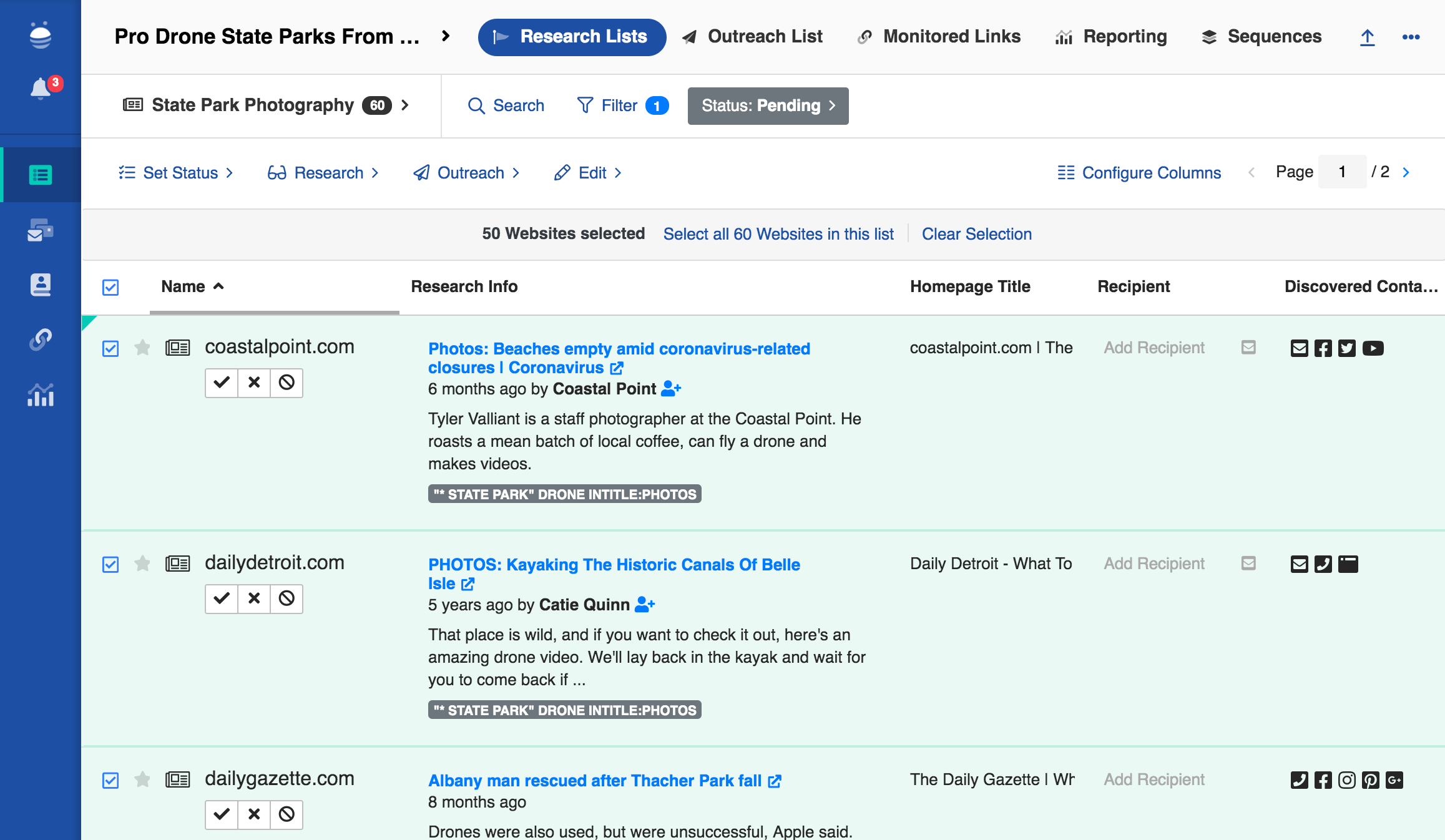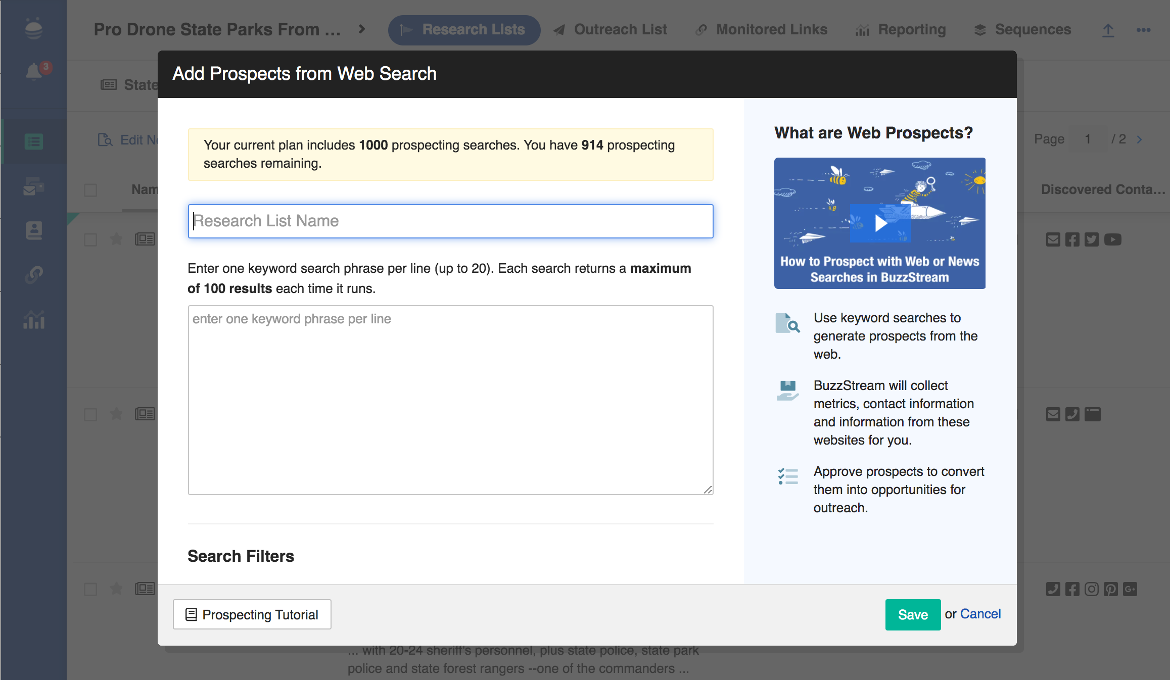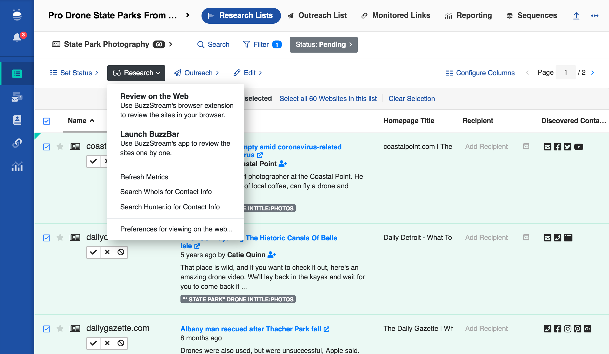 Let BuzzStream do the research for you with automatic prospecting. We’ll gather the most relevant results from web and news searches and build your list in seconds.