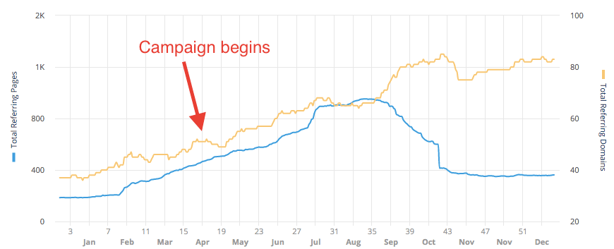 Here’s a simple chart showing the total-referring domain count increasing significantly.