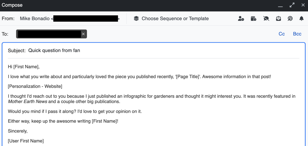 After getting my email templates in place and my prospect list prepped and ready, I began outreach to the list of blogger targets.