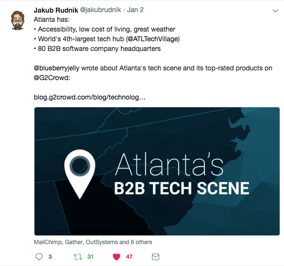Our content team connected with influencers and tech leaders in the cities they were responsible for to gather quotes to include in their reports. Through different social media networks and our large network of software connections at G2 Crowd, we were able to gather many well-known thought leaders in different cities.