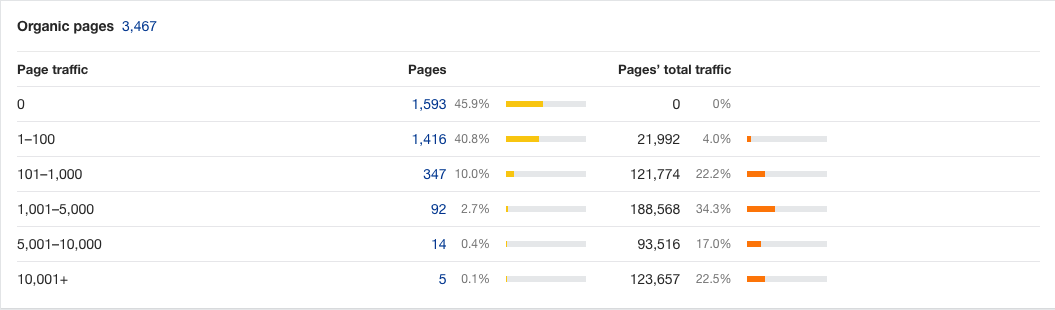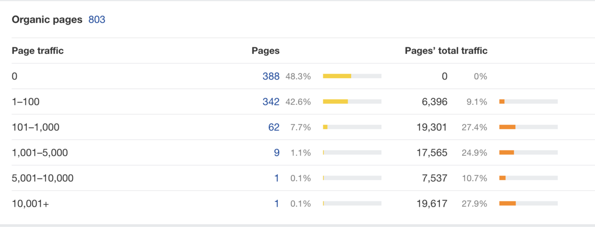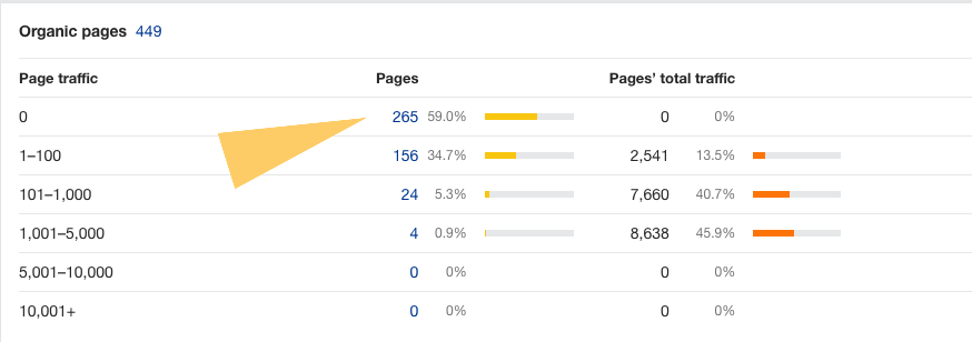 But overall, over half of their articles on the blog aren’t getting any traffic or backlinks.