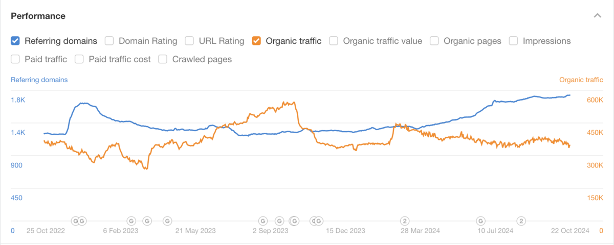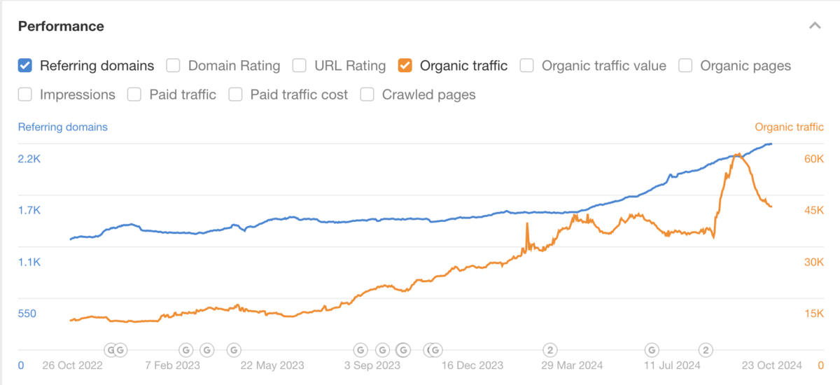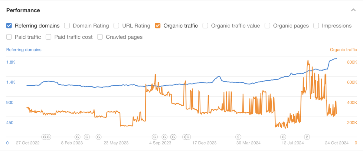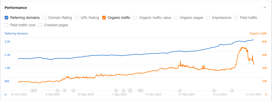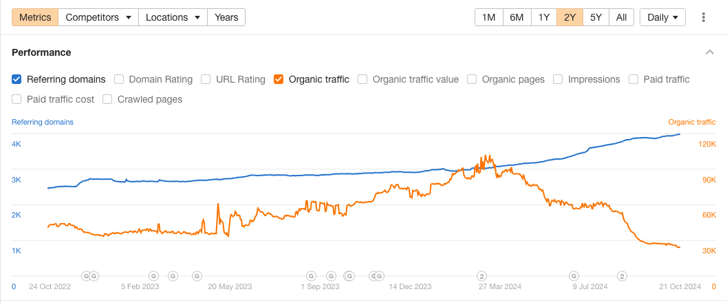 However, organic traffic has steadily declined since the earliest Helpful Content Updates.