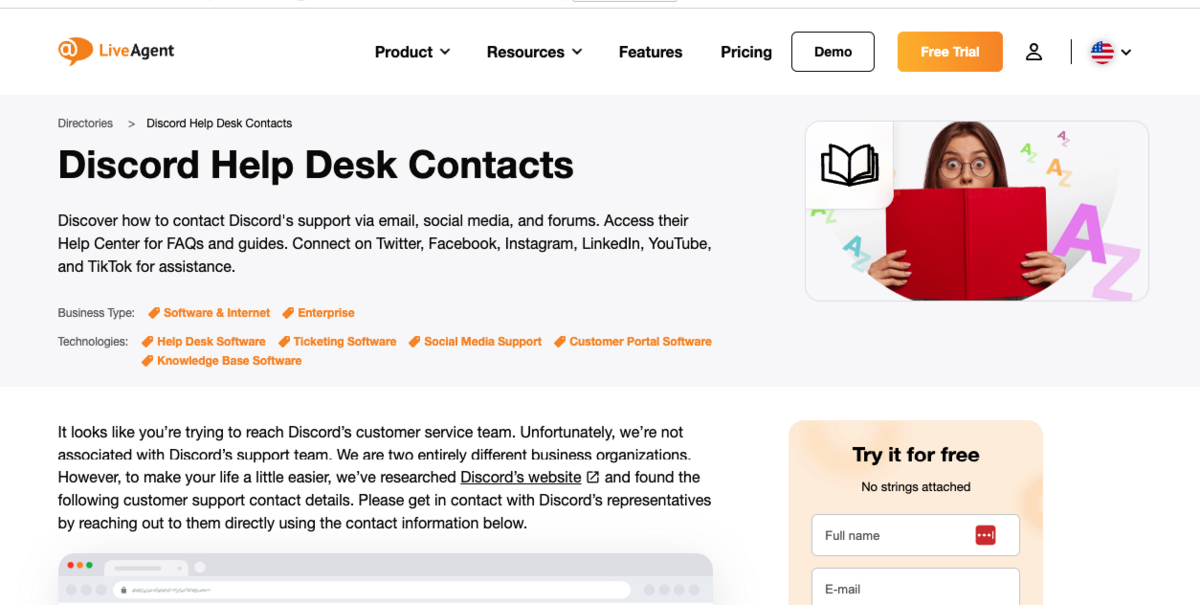 One section of content that stood out to me is their Help Desk Contacts pages.
