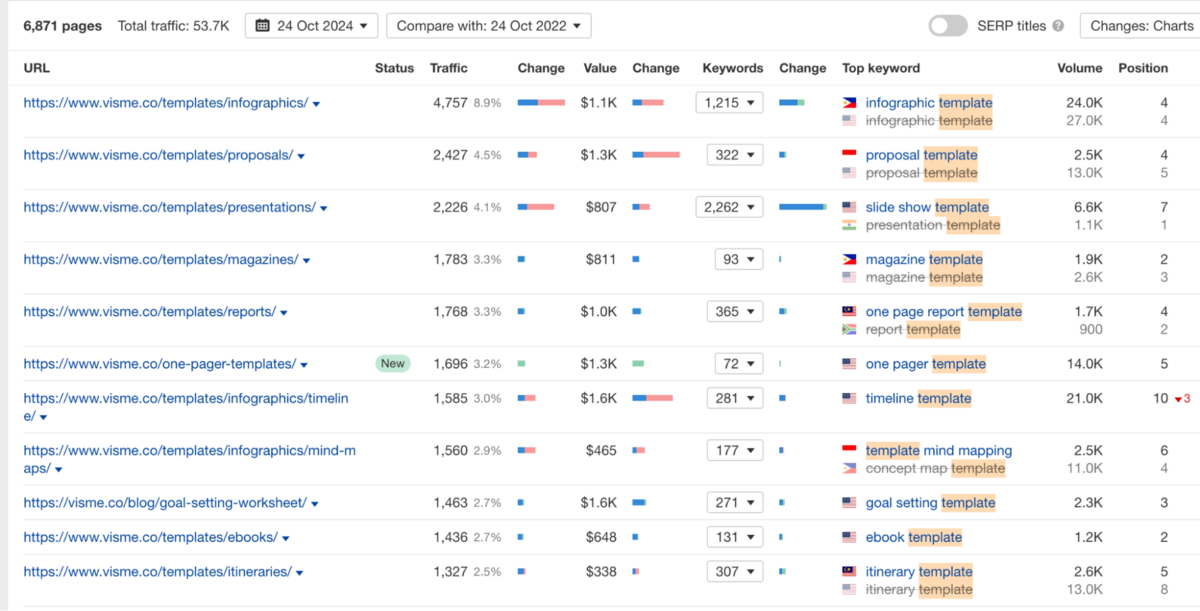 The page ranks #2 for “email template,” bringing them an estimated 26k monthly traffic.