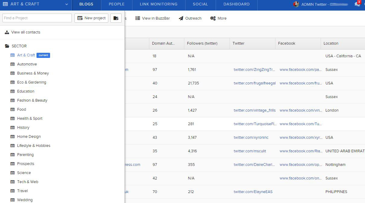 In BuzzStream, we have a permanent record of our contacts. We decided to categorise them by sector, so it’s quick and easy to find bloggers relevant to a particular client and when we add a list of new blogs, we can re-use that research again and again for different projects.
