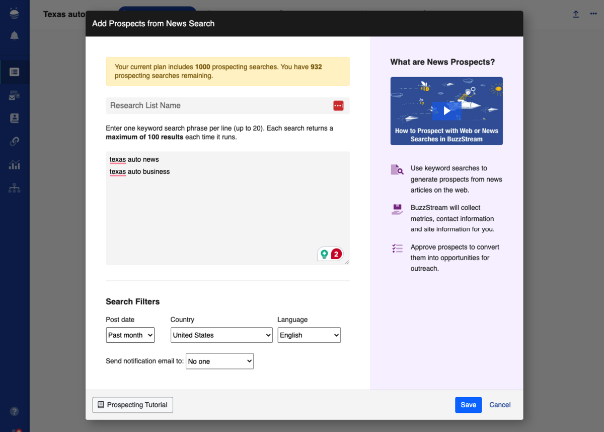 Instead of using the Research List building tool to find Google News articles, I use a general Google Search.