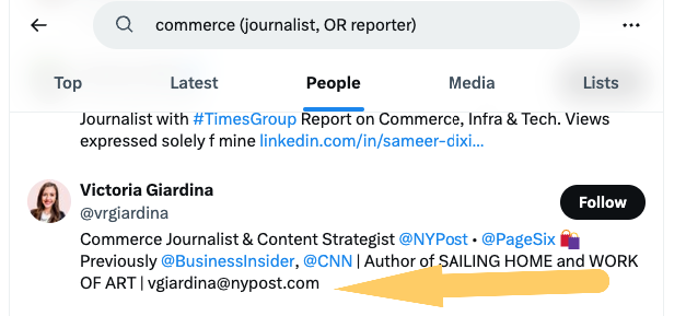 Then click on the People tag, scroll through to each of these journalists, and measure their fit.