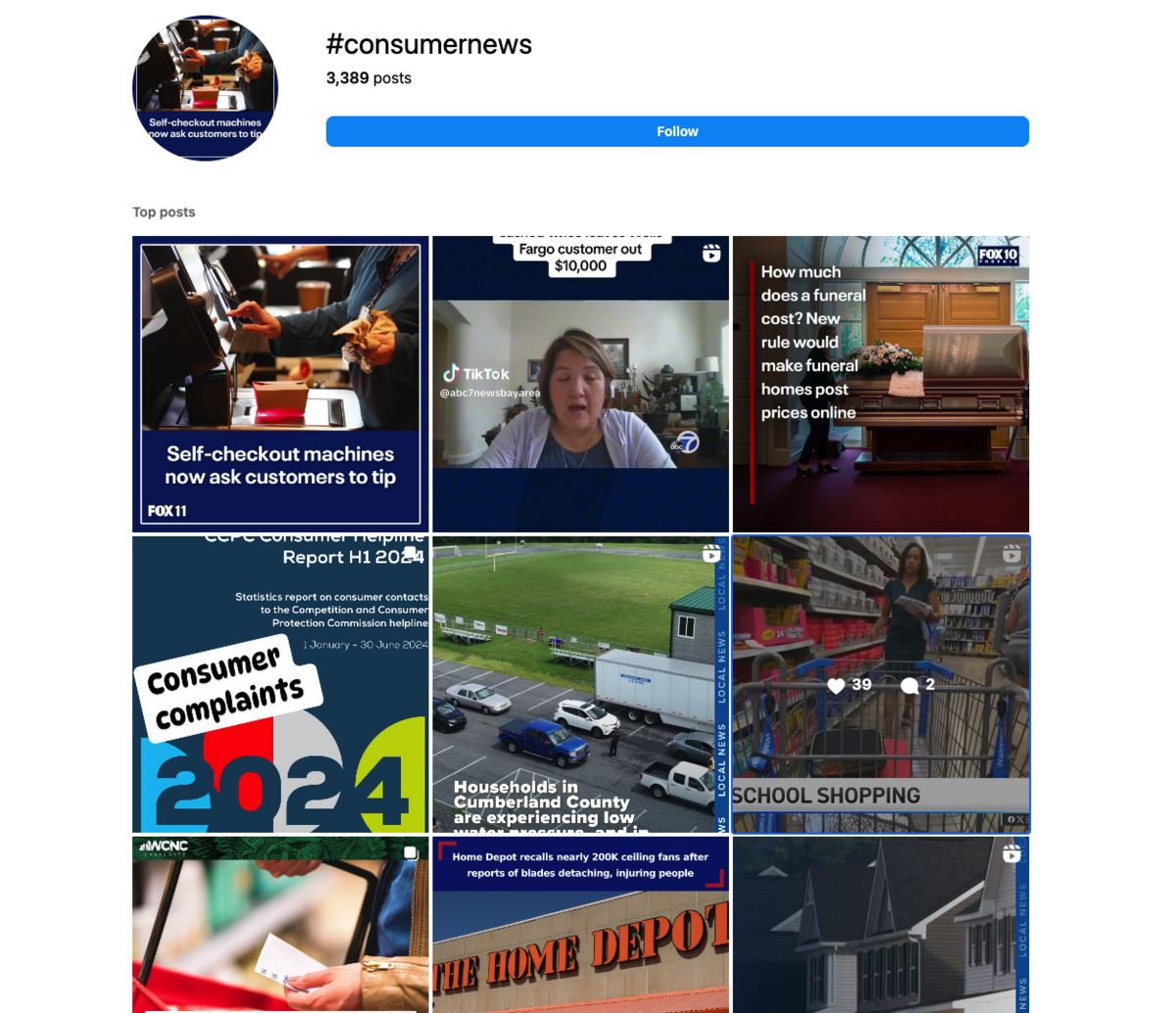 If I search #consumernews on Instagram, I find thousands of posts around the topic.