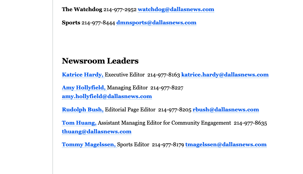In the case of The Dallas Morning News, we can find an automotive news reporter by clicking into the Autos section of the site: