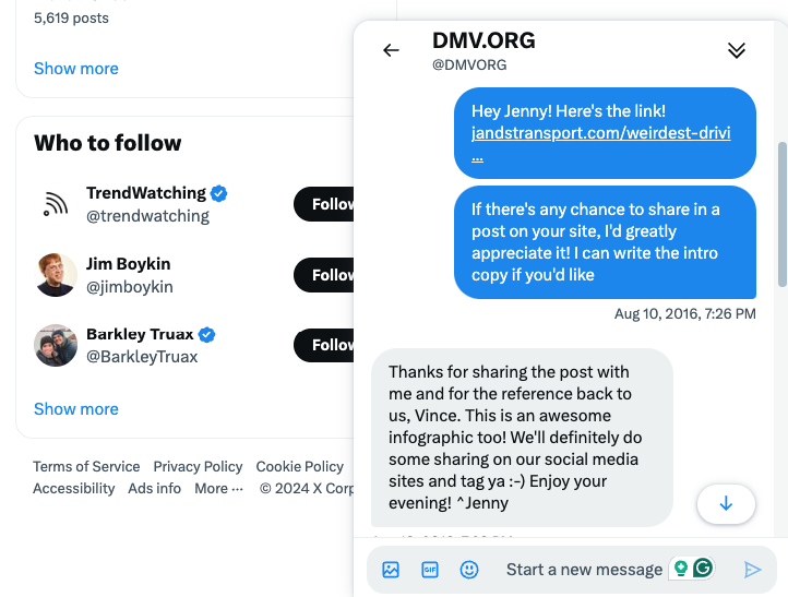 Gabriela Covay, from Bright Valley Marketing, told me that “an alternative to emailing journalists is reaching out through their social channels, notably X.