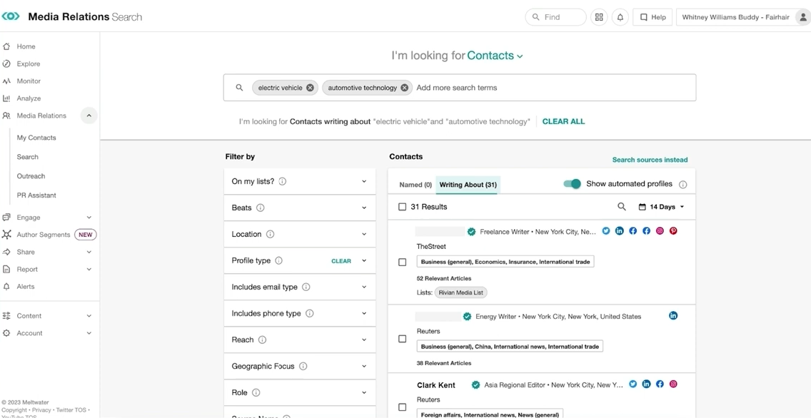 “The filtered search function allows the team to filter contacts based on specific criteria such as industry, publication, location, job title, etc. This enables highly targeted outreach, which has resulted in thousands of pieces of coverage over the years.”