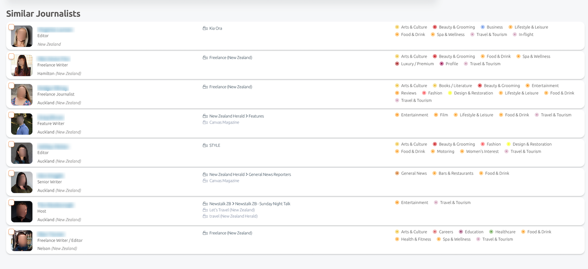 Ben informed me that Muck Rack recently added several AI-powered features to enhance its search function. You can see this in the “Recommended Journalists” section below.