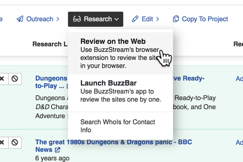 If you’d like to go beyond this summary information, BuzzStream also gives you tools to do deeper research. One of the more powerful ways to do this is by launching into a web research flow.