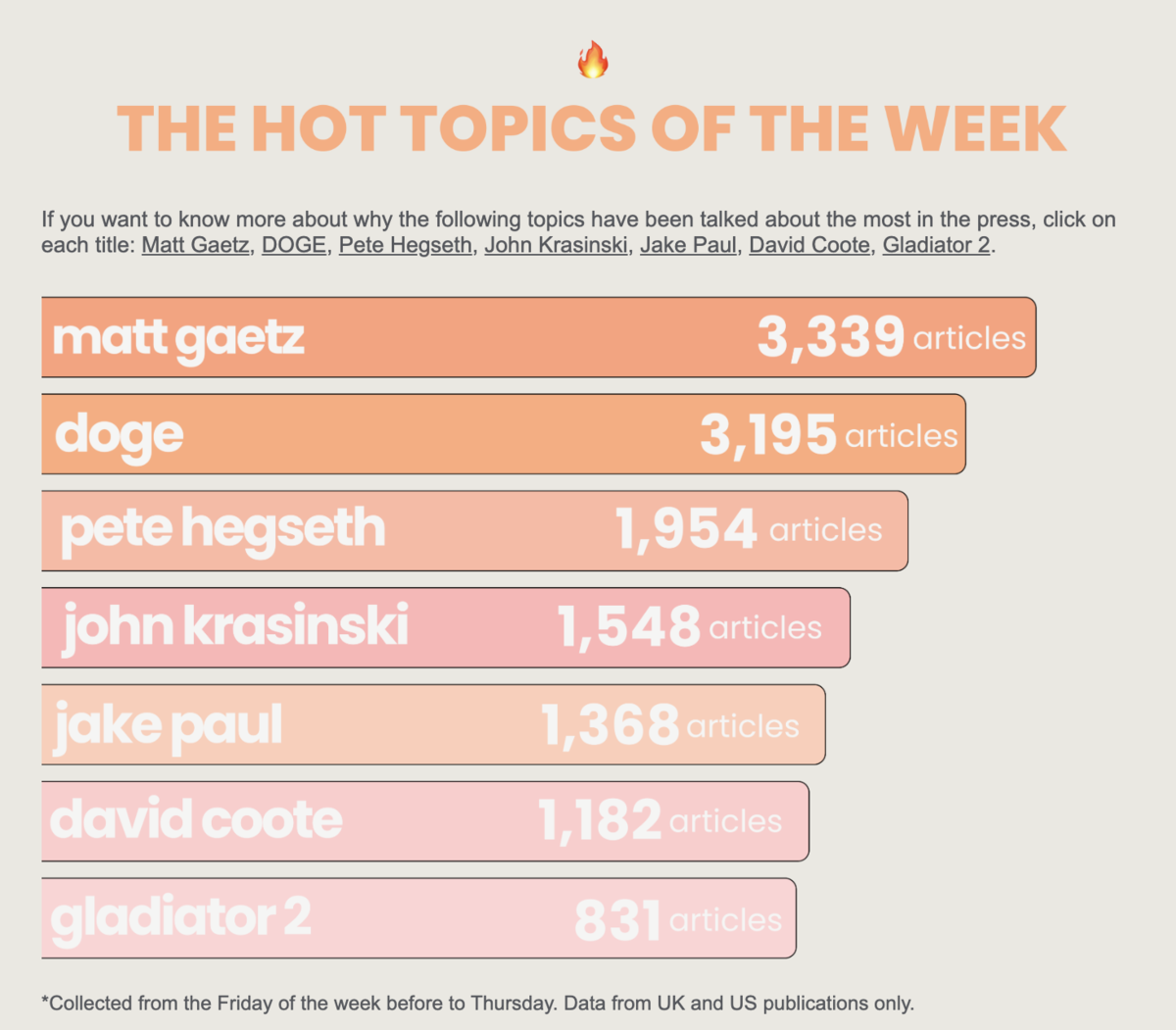 Below, you can see examples of the hot topics of the week.