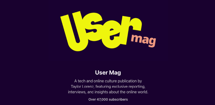 Former New York Times reporter and current Washington Post technology columnist Taylor Lorenz’s Substack, User Mag, sends out the newsletter every few days.