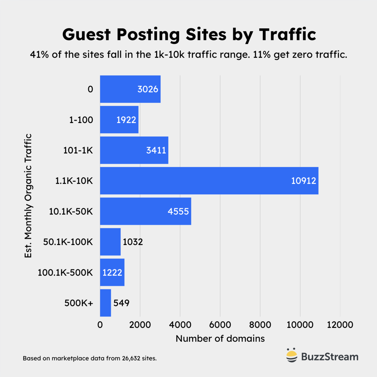 The way I originally did my guest posting sites study was that a high-quality site had both DR 65+ and 20K+ monthly organic traffic.