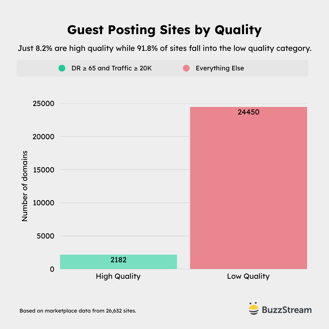 - High-quality guest posts (DR 71+ & 50K+ traffic) make up just 4.6% of the marketplace.