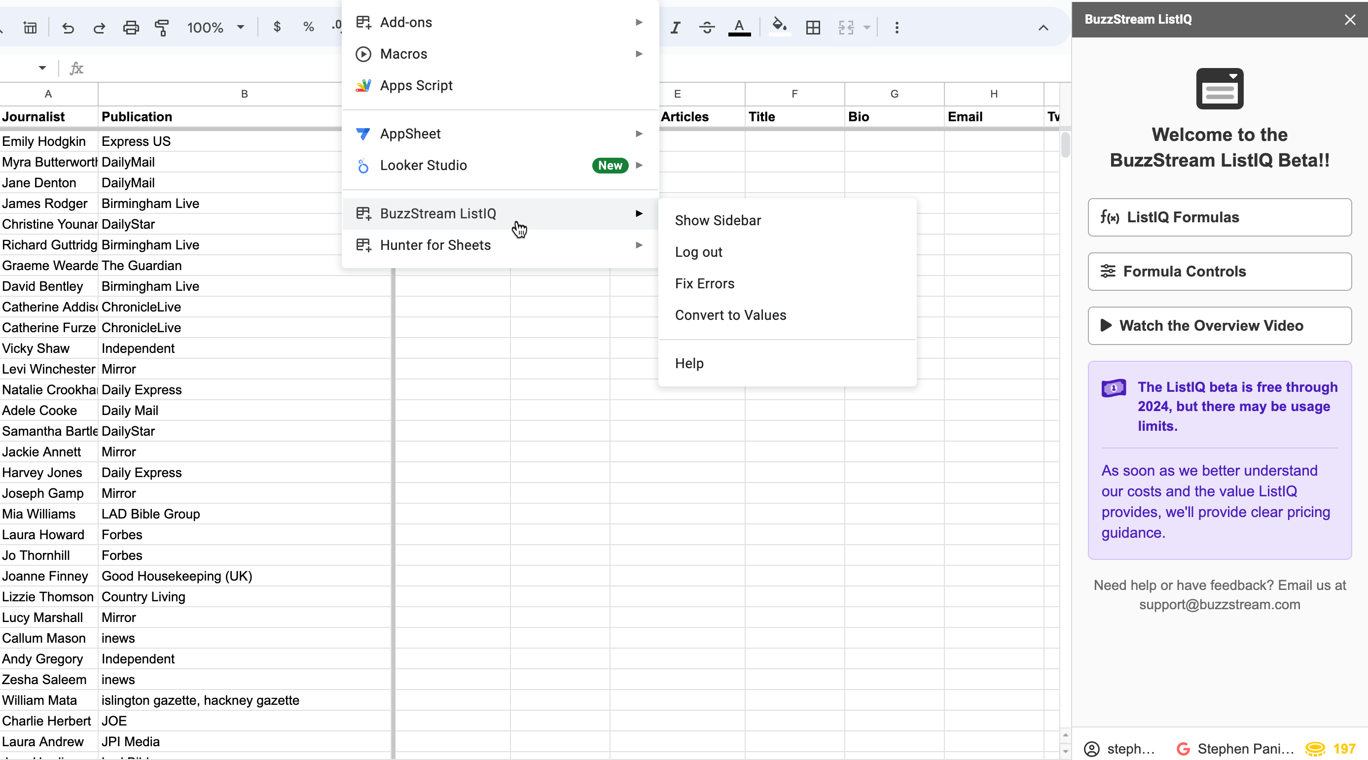 ListIQ is a separate product, but both live under your BuzzStream account. That means if you currently have a subscription to BuzzStream, you can access ListIQ using your current account credentials, and during beta, you will have access to all the free credits available to new ListIQ users. If you don’t have an existing BuzzStream account, you can create your BuzzStream ListIQ account for free during setup.