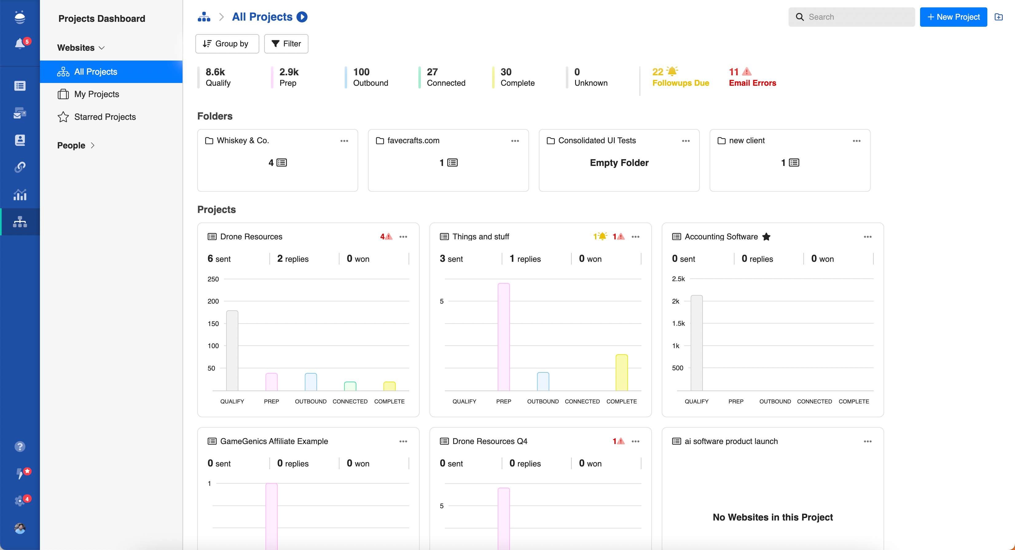 Today marks the launch of the highly anticipated Project Dashboard feature for all our users—and it’s set to transform how you manage your outreach projects. Say goodbye to the days of manually reviewing projects individually to assess their status or take action on the next steps.