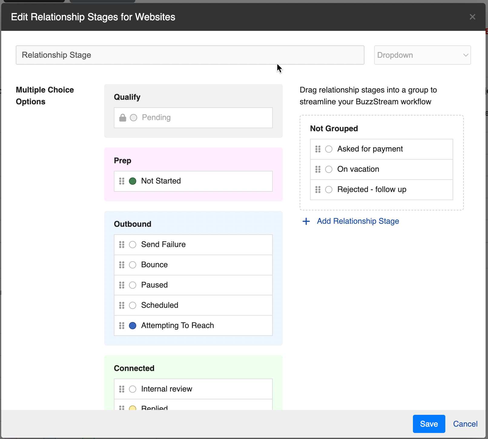 Now, if you are familiar with BuzzStream, you are likely already asking yourself: How the heck do these phases get populated? And what happened to my relationship stages!?