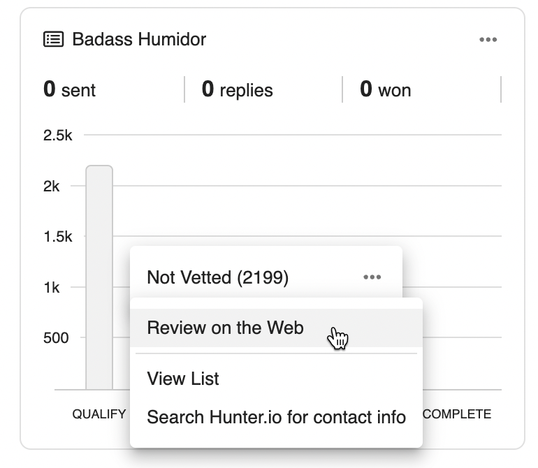 Alternatively, you can take action directly by clicking on the qualify phase, then launching into a Review on Web workflow to qualify those prospects directly from the project tile.
