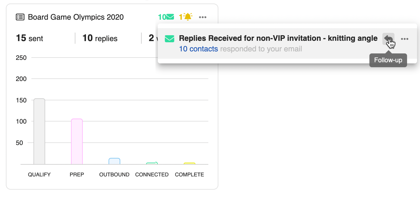 To do that, just make sure you’re in the “My Projects” view in the dashboard, then click on the “Connected” phase. You’ll now be presented with a view of all your projects that have replies.