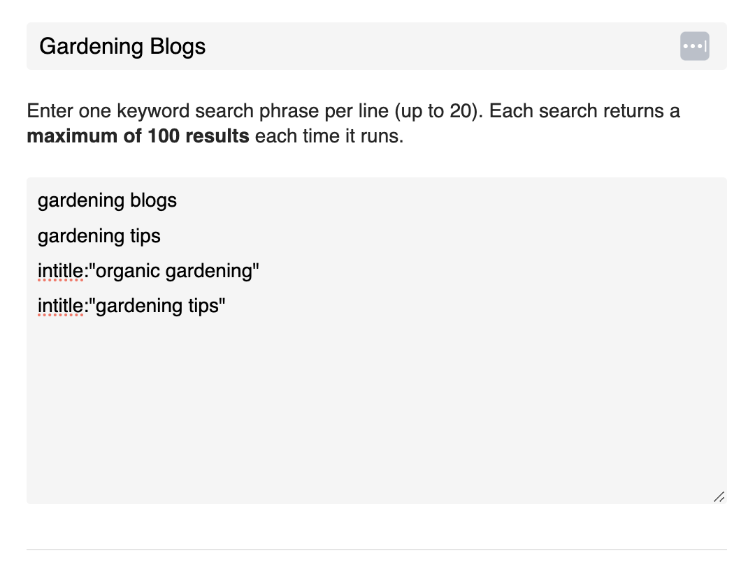 Using Buzzstream’s prospecting tool, I created a research list using search operators like “gardening blogs” and related terms that would produce blogs that may be interested in the shiny new infographic.